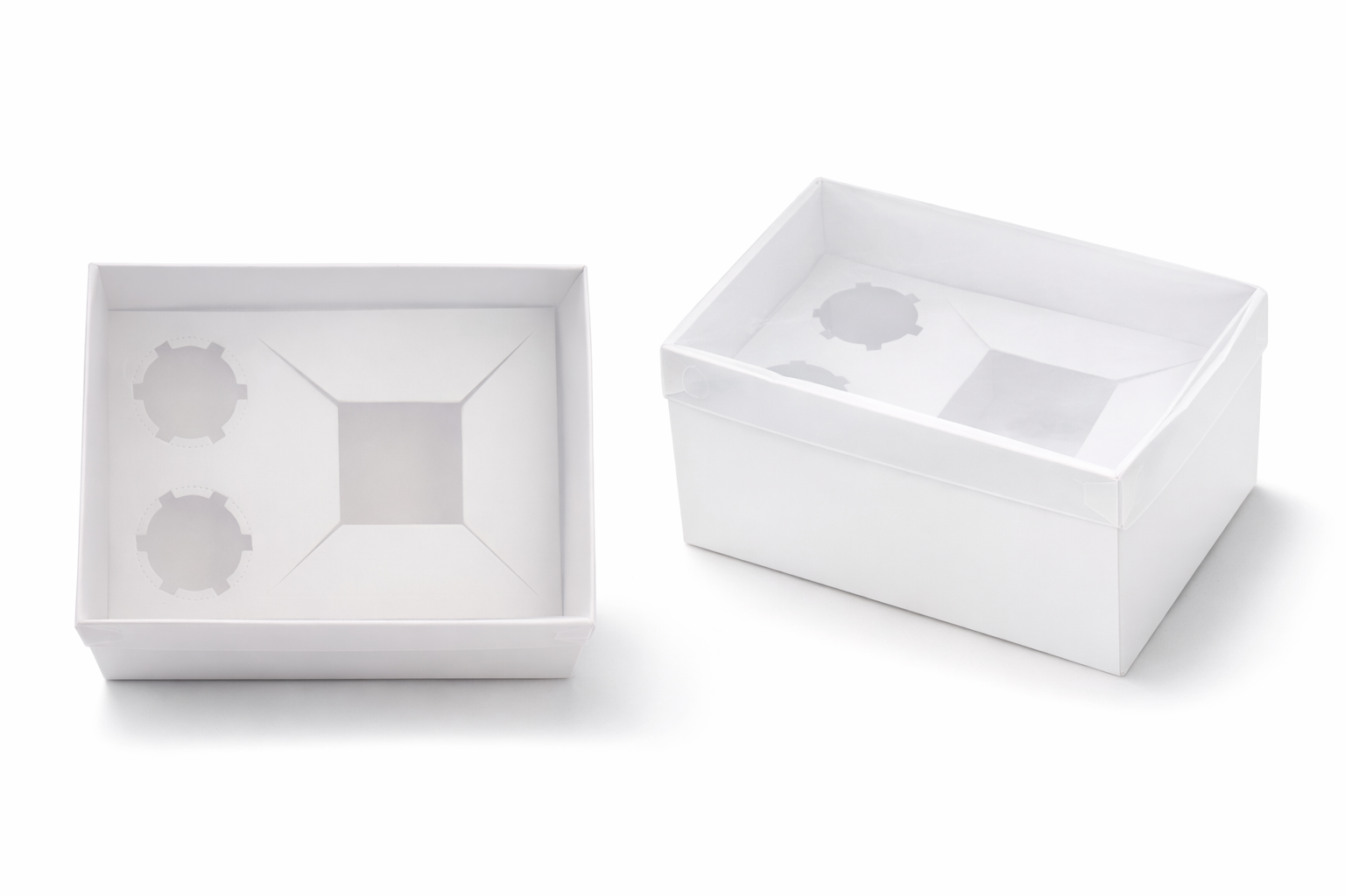 Part of our Premium packaging range, the 2 Bento Box is very sturdy box with a solid plastic lid and a paperboard base. The lid is slightly opaque and not completely transparent. This, however, creates a premium gifting experience, which is exactly what this box is intended to do. Elevate your range or gift by opting for the 2 Bento Box.