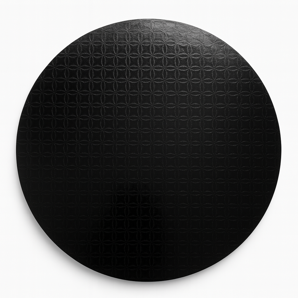 A quality cake board, 5mm thick, covered in patterned foil. So in short, a board and you put cakes on it. One inch is 2.54cm. Keep your pan size at least one inch smaller than your board size. See our portions blog post for sizing.