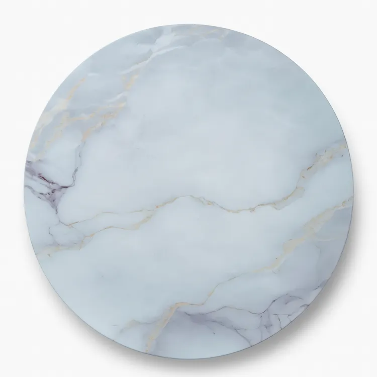 A smooth cake board, with an elegant marble design, covered in a smudge-proof plastic coating to prevent damage.