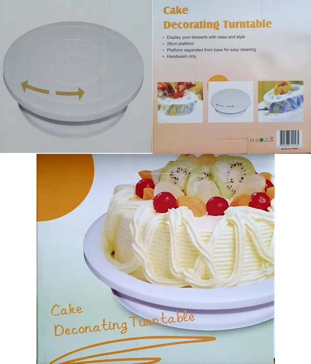 Cake decorating turntable. To safely rotate your cake whilst decorating. Easy to wash and wonderful for display purposes.