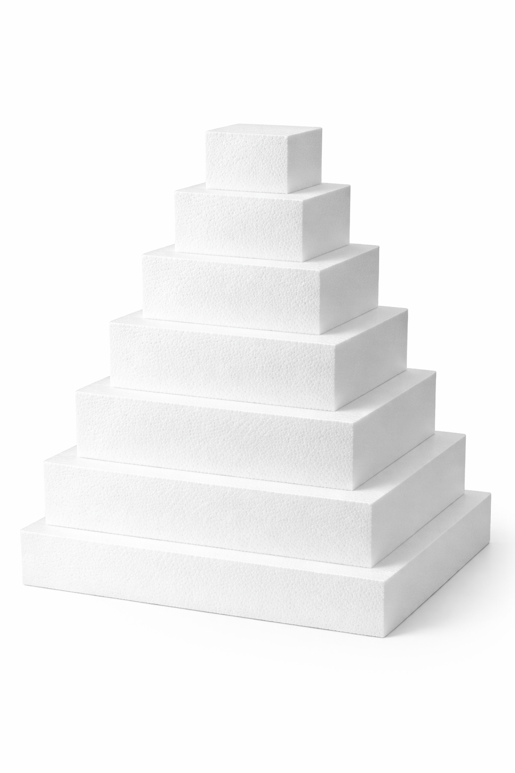 Polystyrene cake dummies, also known as foam cake dummies or dummy tiers, are lightweight foam shapes used by cake decorators to practise covering cakes, build display cakes or create extra tiers without baking additional cake layers. Made from firm expanded polystyrene, they are easy to cover with fondant, royal icing or buttercream to achieve the same smooth finish as a real cake.