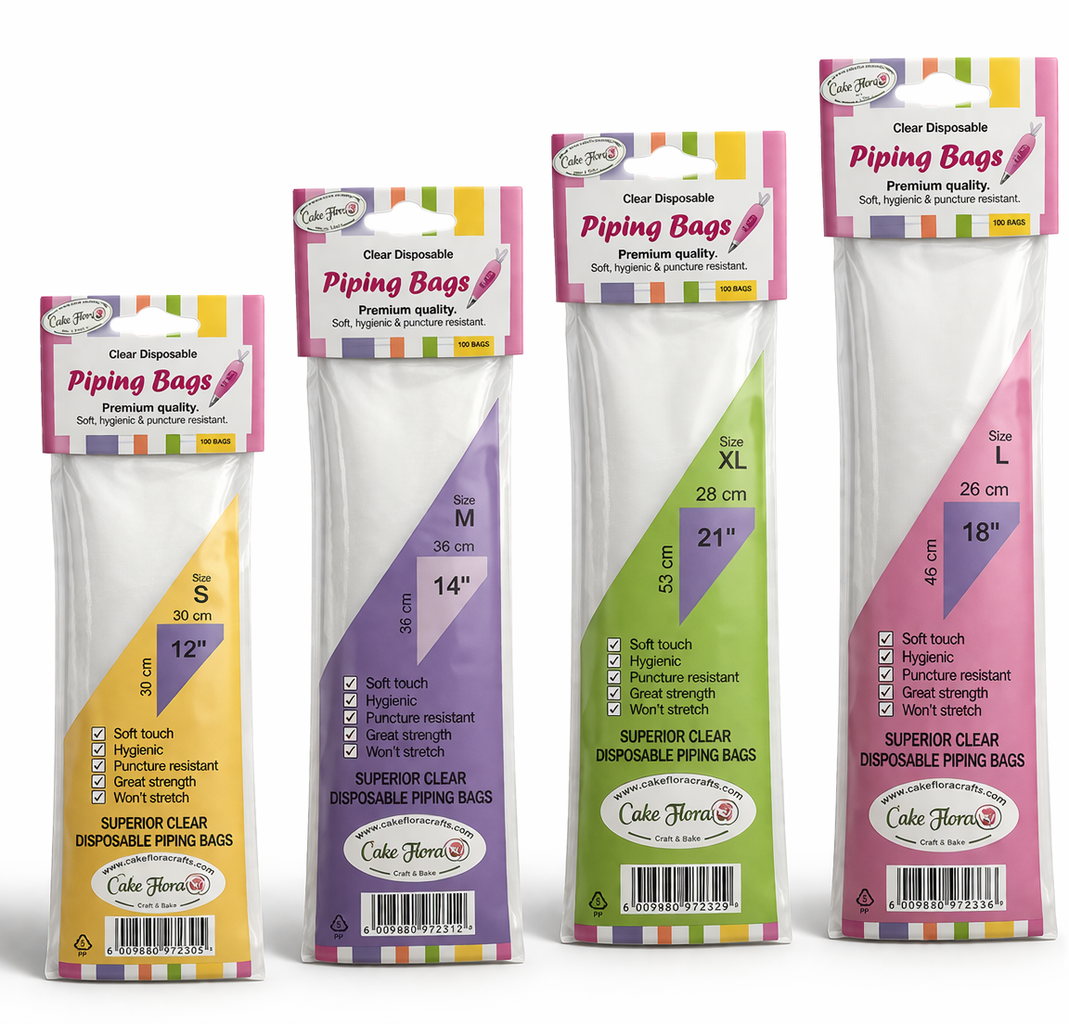New range of superior clear disposable piping bags! These bags are puncture resistant and won’t stretch and are available in four sizes: 12, 14, 18 and 21 inches.